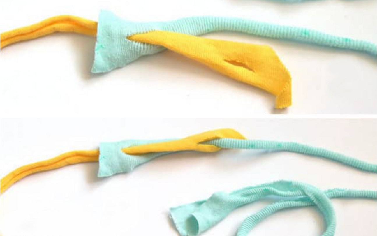 - Завязывание: Завяжите концы полосок небольшим узелком.