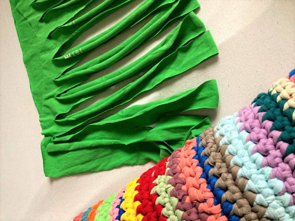 Мы особенно любим вязать коврики из пряжи из старых футболок. Они получаются очень мягкими и приятными на ощупь. А еще это отличный способ использовать остатки пряжи разных цветов и создать действительно уникальный дизайн.
