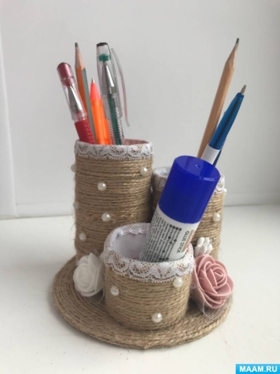 - Декорирование основания (опционально): Чтобы придать органайзеру завершенный вид, можно задекорировать и основание. Например, обклеить его бумагой, тканью или покрасить краской.