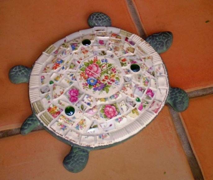 - Панно с изображением животных: Изобразите своих любимых животных, используя технику мозаики из битой керамики.