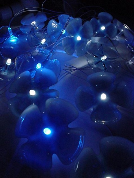 - Гирлянда с подсветкой: Просверлите отверстия в крышках и вставьте в них светодиоды, чтобы создать светящуюся гирлянду.