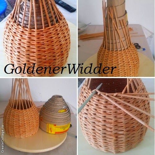 - Завершаем плетение: Когда корзина достигнет нужной высоты, загибаем концы трубочек основы внутрь и приклеиваем их.