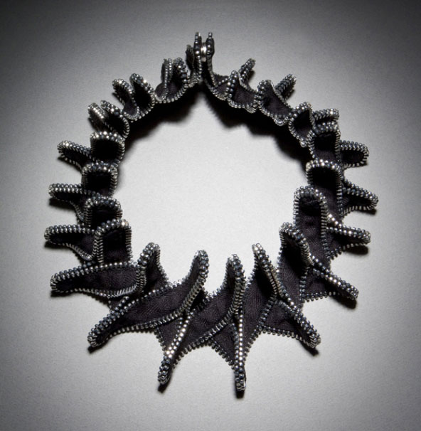 - Колье-воротник: Сшейте вместе зубчики нескольких молний‚ формируя воротник. Украсьте бисером‚ стразами или кружевом.